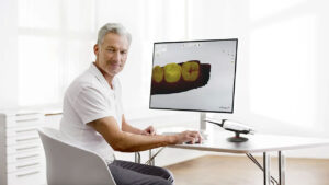 Cyfrowy skaner 3D umożliwia pobranie w ciągu kilku minut wirtualnego wycisku bez użycia masy wyciskowej. Dzięki temu już na wstępnej konsultacji, przed rozpoczęciem leczenia, otrzymujemy model 3D uzębienia Pacjenta na ekranie komputera.